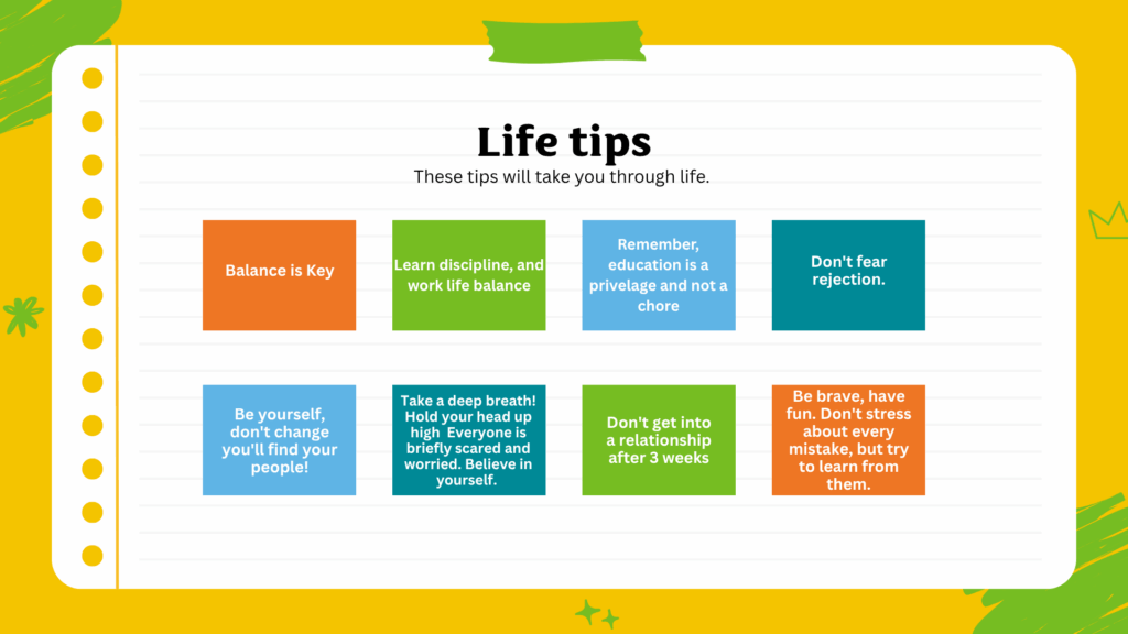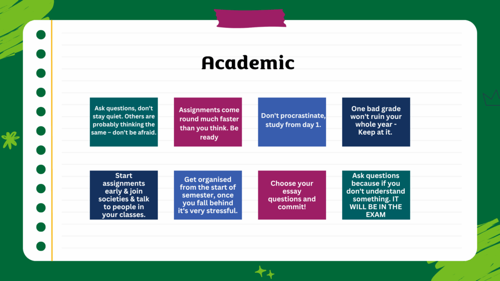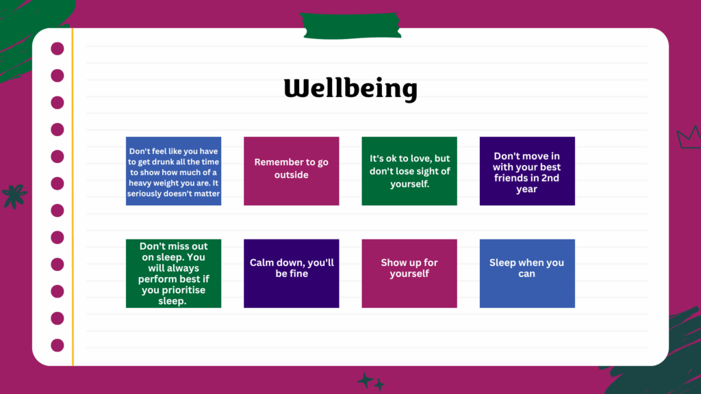 Below is are some of the advice left for our new first years, however a lot of them are applicable to all of us whatever age or stage we are in our lives.