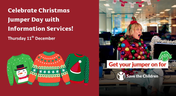 Let’s make the day merry and bright across Information Services. We can’t wait to see your jumpers!