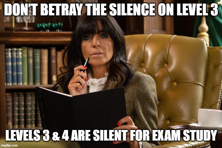 We know how important the right environment is during exams. If you’re being disturbed by noise on Levels 3 or 4, please let us know so we can help: