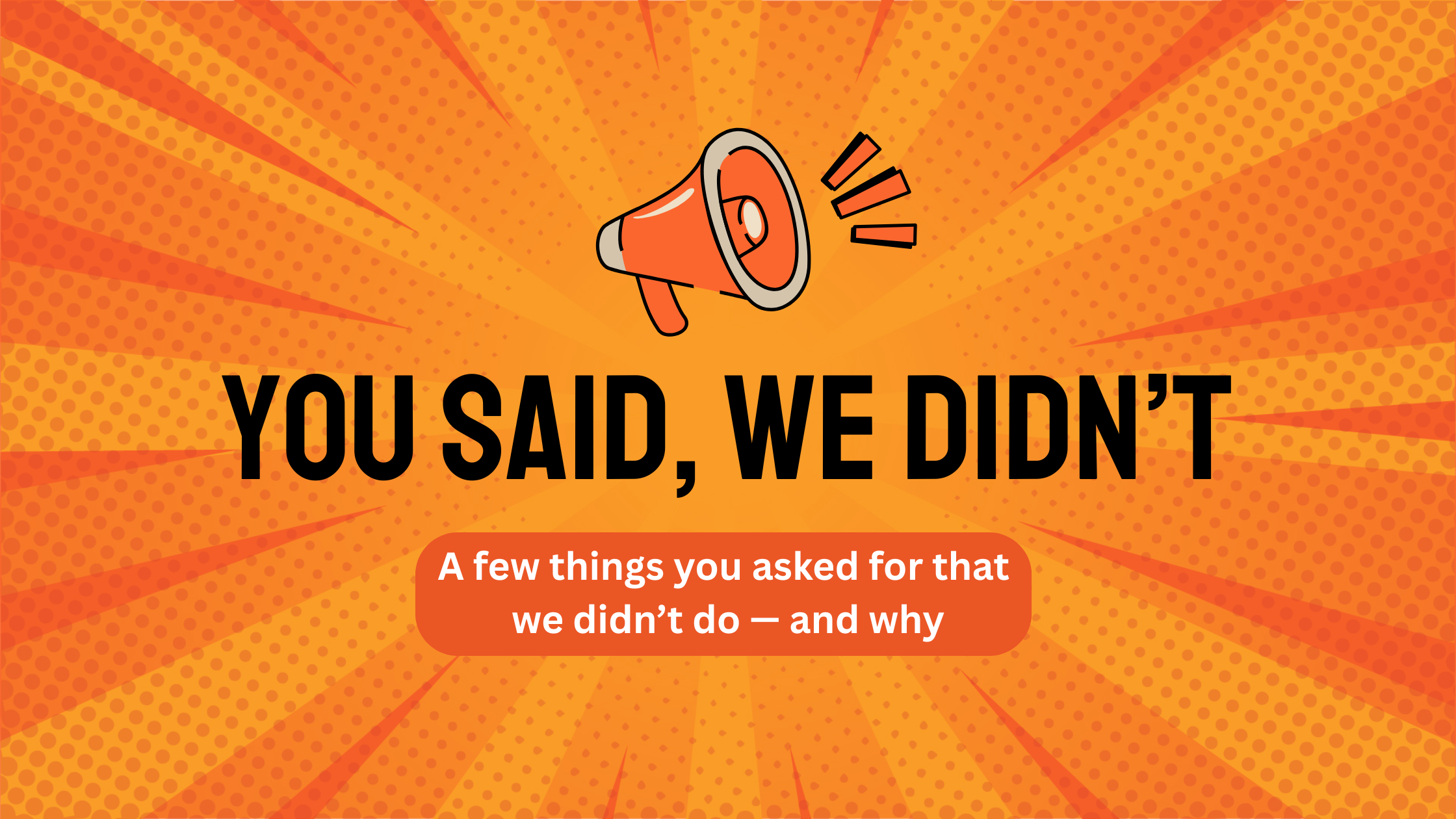 We love hearing your ideas, suggestions, and the occasional inspired rant about how the library should work. Many of your suggestions turn into real improvements. But some… well… here are a few things you asked for that we didn’t do – and why. “Make the lights stop turning off when no one is moving in the library.” You said: […]