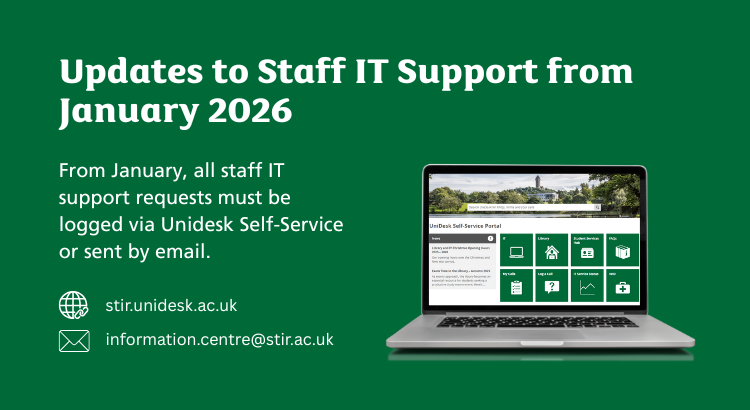 From January 2026 there will be some changes to how staff IT support will be provided through the IT Service Desk at the Information Centre. To ensure we can offer consistent, timely and high-quality support for all staff, we are standardising how IT issues are raised and managed. This will allow us to prioritise requests […]